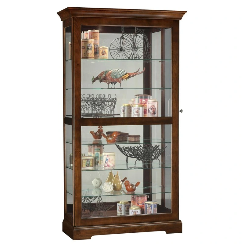Elevate your living space with the Howard Miller Curio Cabinet, beautifully crafted from Cherry Bordeaux wood. This elegant piece showcases your prized collections with a sophisticated blend of tradition and modern style, enhanced by a convenient No-Reach roller light switch for its illuminating display.