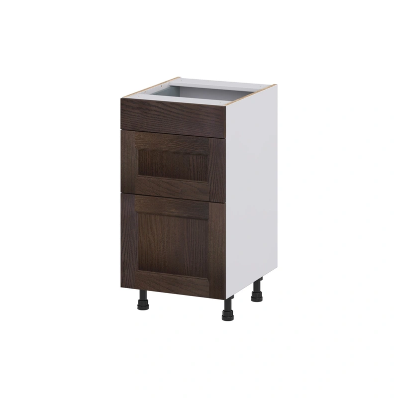 Hugo&Borg 3-Drawer Base Cabinet - Recessed Panel The Hugo&Borg 18-inch Wood 3-Drawer Base Cabinet offers a sleek, fully assembled storage solution for your kitchen or bathroom. Its recessed panel design complements traditional aesthetics while prov