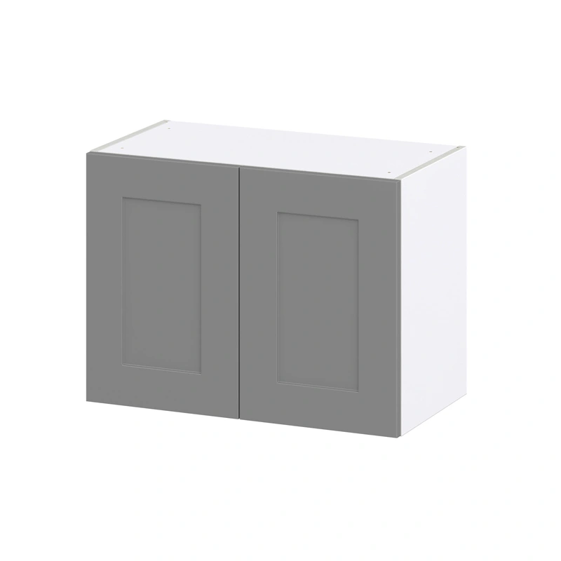 Hugo&Borg Slate Gray Wall Cabinet Enhance your space with the timeless elegance of the Hugo&Borg Slate Gray Wall Cabinet. Featuring a recessed panel Shaker door style, this cabinet combines modern design with unmatched functionality. Designed with