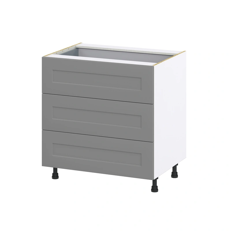 Hugo&Borg 4-Drawer Slate Gray Base Cabinet Upgrade your home with the Hugo&Borg 4-Drawer Base Cabinet in sleek Slate Gray, designed for maximum functionality and style. Built with a modern frameless design, this fully assembled cabinet offers 2% mo