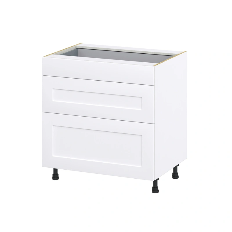 Hugo&Borg 33-in W x 34.5-in H x 24-in D Warm White 3-Drawer Base Fully Assembled Cabinet (Recessed Panel Style)