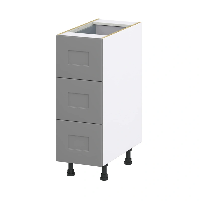 Hugo&Borg Beaumont 12-in Base Cabinet - Slate Gray Enhance your home renovation with the Hugo&Borg Beaumont Base Cabinet, pre-assembled for your convenience in an elegant slate gray finish. This cabinet features four spacious drawers with full-exte
