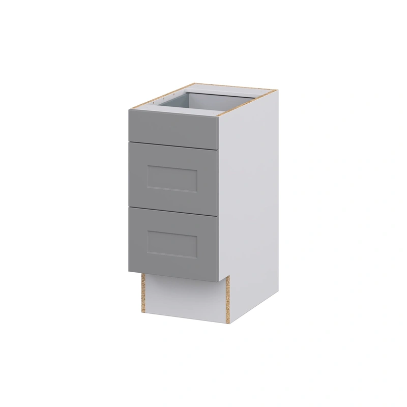 Slate Gray 3-Drawer Base Cabinet The Hugo&Borg Beaumont Slate Gray 3-Drawer Base Cabinet combines contemporary style with full functionality for a sleek, efficient addition to any kitchen or bath redesign. Enjoy easy installation with its fully assembl