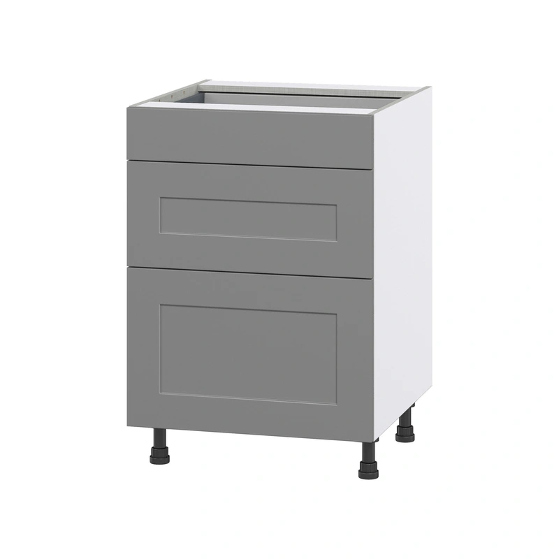 The Hugo&Borg Beaumont 3-Drawer Base Cabinet, meticulously hand-painted in a striking slate gray, brings both style and practicality to your living space. Fully assembled and ready for installation, it features soft-close drawers and extra storage capacity, making it a prime choice for modern kitchens and bathrooms.
