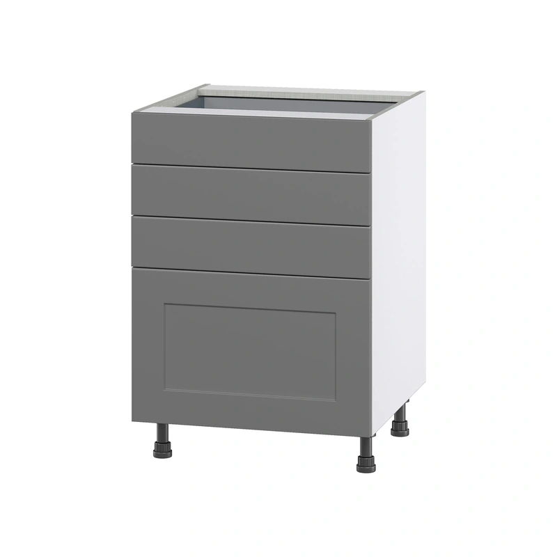 Slate Gray 4-Drawer Base Cabinet The Hugo&Borg Beaumont 4-Drawer Cabinet offers impeccable style and function with its slate gray finish and full-extension, soft-close drawers. Engineered for both beauty and durability, this fully assembled cabinet pro