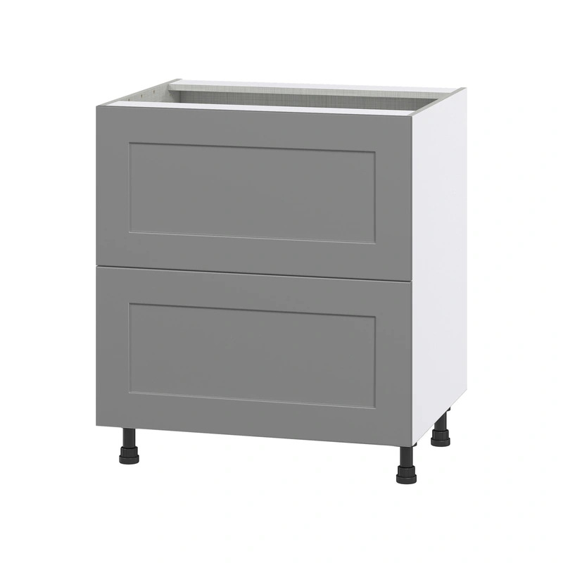 Slate Gray Beaumont 2-Drawer Base Cabinet The Hugo&Borg Beaumont Cabinet combines function with style in a sleek, slate gray finish. Fully assembled with two spacious drawers, it features full-extension soft-close technology and offers a modern, hand-p
