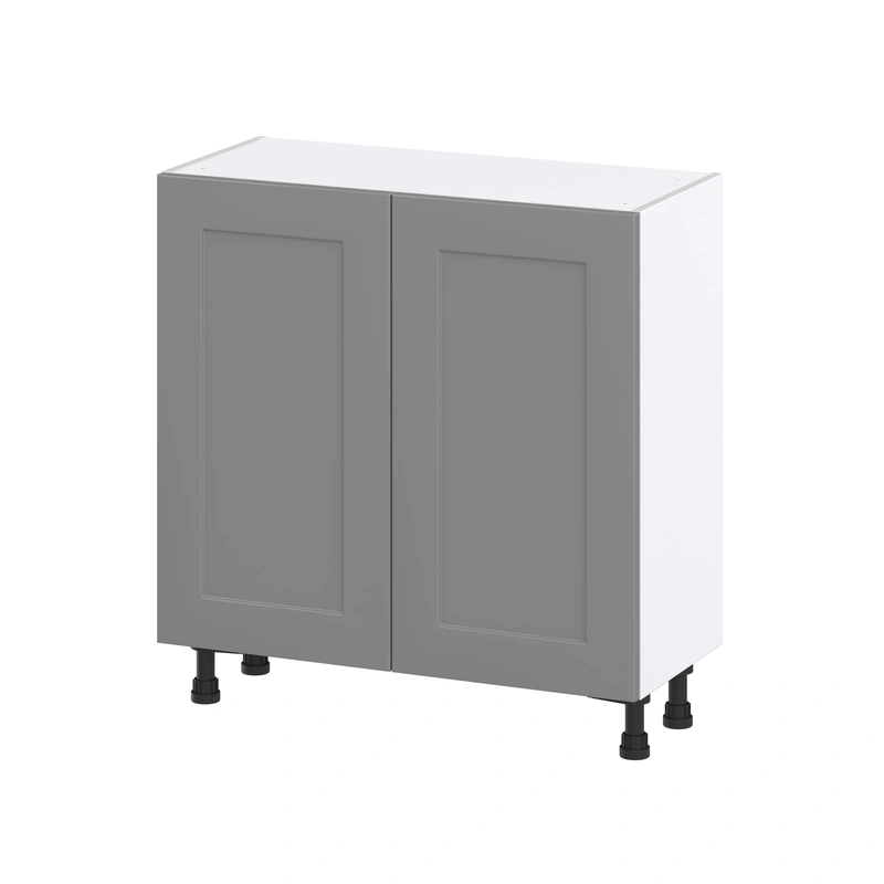 Slate Gray Base Cabinet with Shaker Doors The Beaumont Slate Gray Base Cabinet by Hugo&Borg blends sophistication with functionality, featuring a modern recessed panel Shaker door style. This fully assembled cabinet offers enhanced storage solutions wi