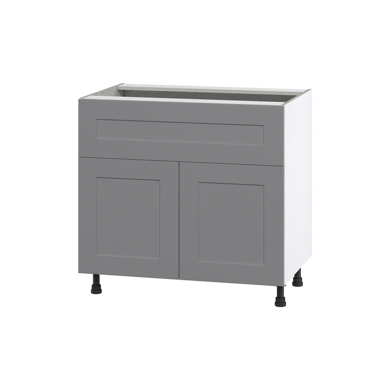 Beaumont Slate Gray Shaker Base Cabinet The Beaumont Slate Gray Shaker Base Cabinet from Hugo&Borg combines modern design with practical functionality. Its full-access box construction offers 20% more storage space, while the hand-painted, stain-resist