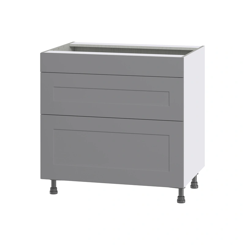 Beaumont Slate Gray 2-Drawer Base Cabinet Transform your space with the Hugo&Borg Beaumont 36-inch base cabinet, fully assembled for convenience and hand-painted in an elegant slate gray. Enjoy seamless storage solutions with its 2 roomy drawers, perfe