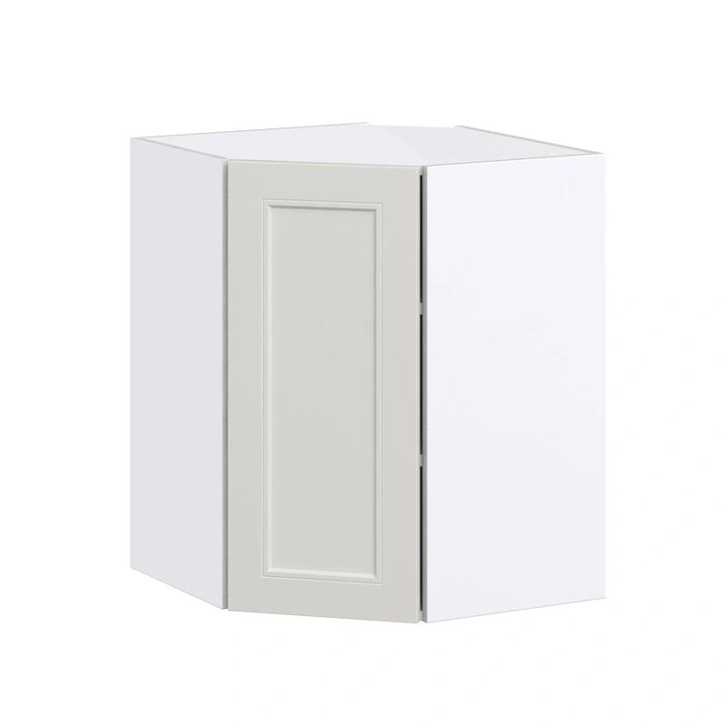 Hugo&Borg Belcourt Gray Corner Cabinet The Hugo&Borg Belcourt Diagonal Corner Cabinet in elegant gray brings exceptional style and functionality to any kitchen. This fully assembled cabinet features a recessed panel Shaker style and a sophisticated