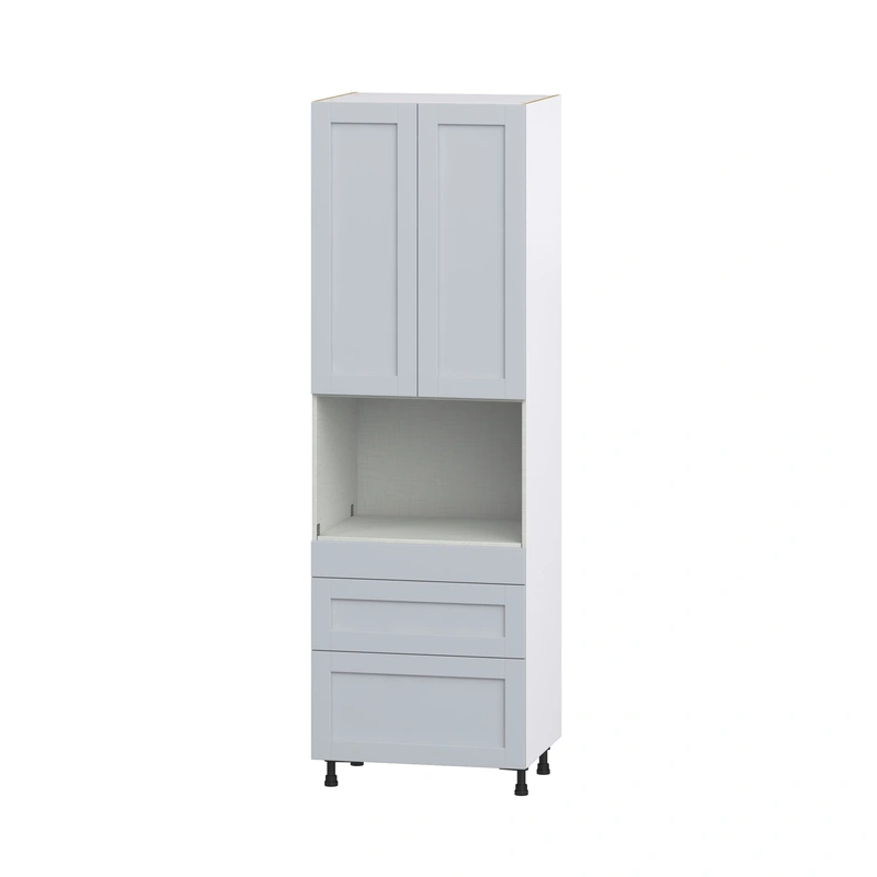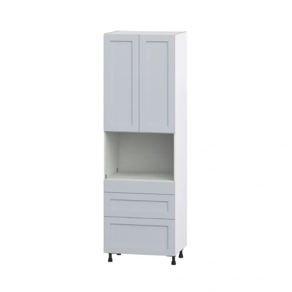Charlesberg Gray Microwave Pantry Cabinet Elevate your kitchen space with the Hugo&Borg Charlesberg Microwave Pantry Cabinet, designed in a chic, light gray Shaker style. This fully assembled cabinet boasts a frameless construction offering 20% more st