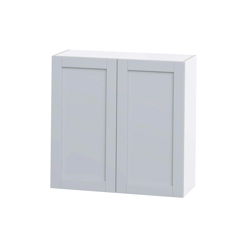 Transform your home with this elegantly crafted Hugo&Borg wall cabinet. Its light gray Shaker doors bring a sophisticated charm to any room, beautifully complemented by a chic linen pattern interior. Perfect for a minimalist aesthetic, pair it with modern metallic fixtures or vibrant accent pieces for a striking contrast. This cabinet is not just a storage solution; its an essential fixture for a refined and luxurious living environment.