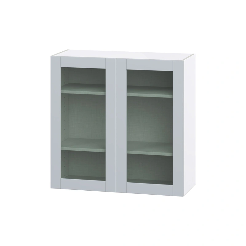 Charlesberg Gray Wall Cabinet with Glass Panel Shaker Doors The Hugo&Borg Charlesberg Wall Cabinet combines modern elegance with practical design. Its eye-catching glass panel Shaker doors elegantly display your items, while the soft-close feature ensu