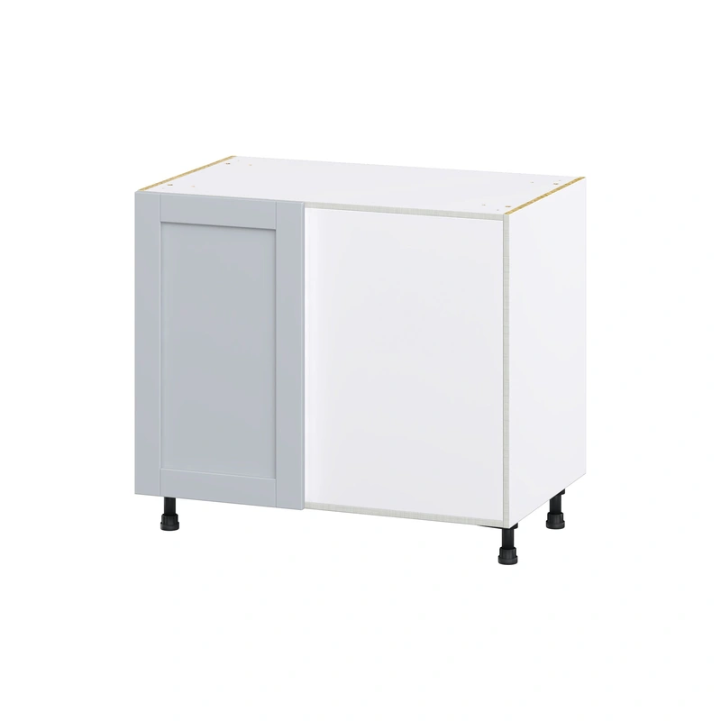 Hugo&Borg Gray Shaker Style Blind Corner Cabinet The Hugo&Borg Charlesberg Gray Blind Corner Base Cabinet offers sophisticated, functional space-saving solutions with its European-style frameless design. Fully assembled and featuring a soft-close M