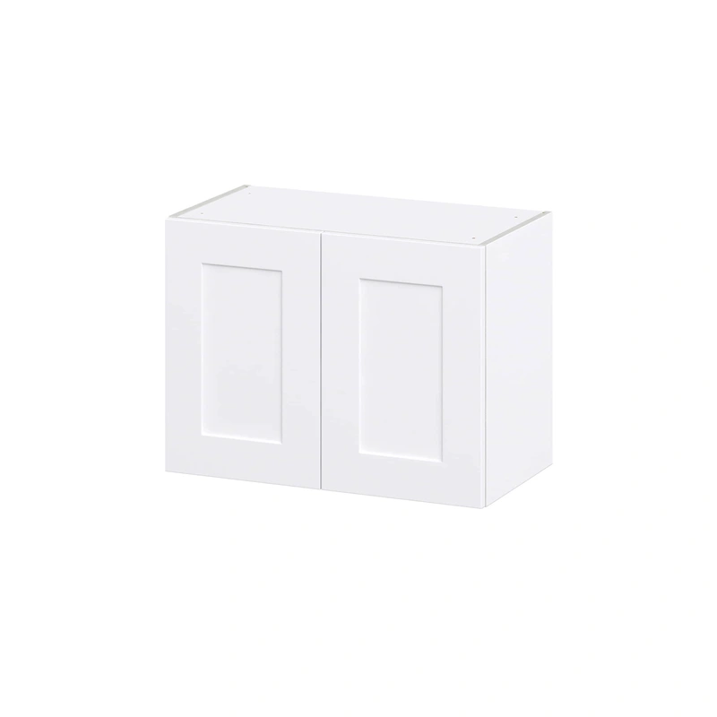 Jolie Shaker-Style Wall Cabinet in Warm White The Hugo & Borg Jolie Shaker-Style Wall Cabinet is fully assembled and crafted to enhance your space with its contemporary recessed panel design. With a resilient stain- and water-resistant warm white finis
