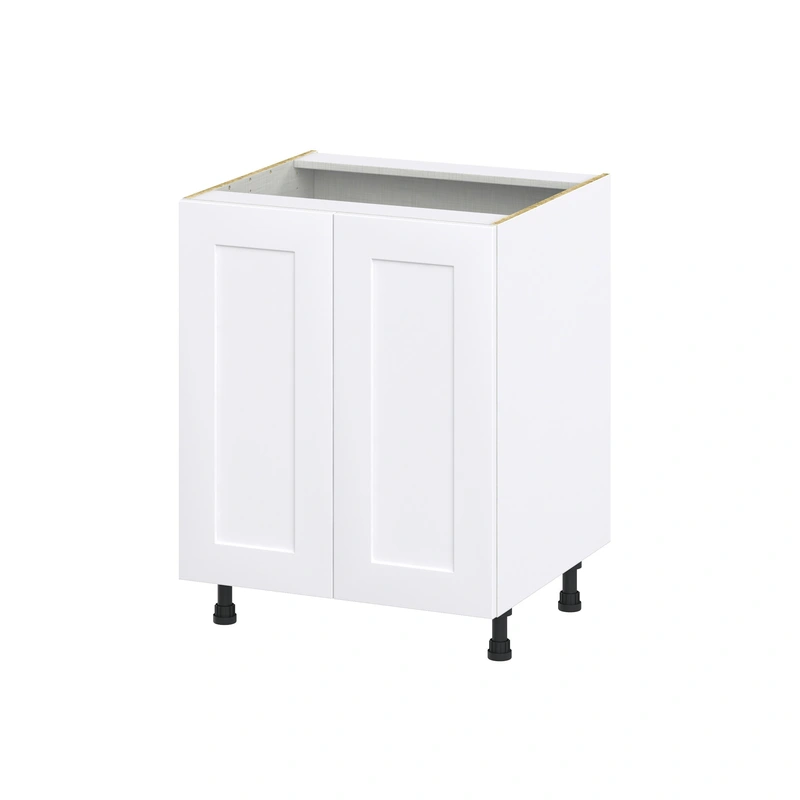Jolie Warm White Sink Base Cabinet The Jolie Warm White Sink Base Cabinet by Hugo&Borg combines modern design with practical functionality. The fully assembled cabinet features a recessed panel Shaker style, offering a timeless look that fits seamlessl