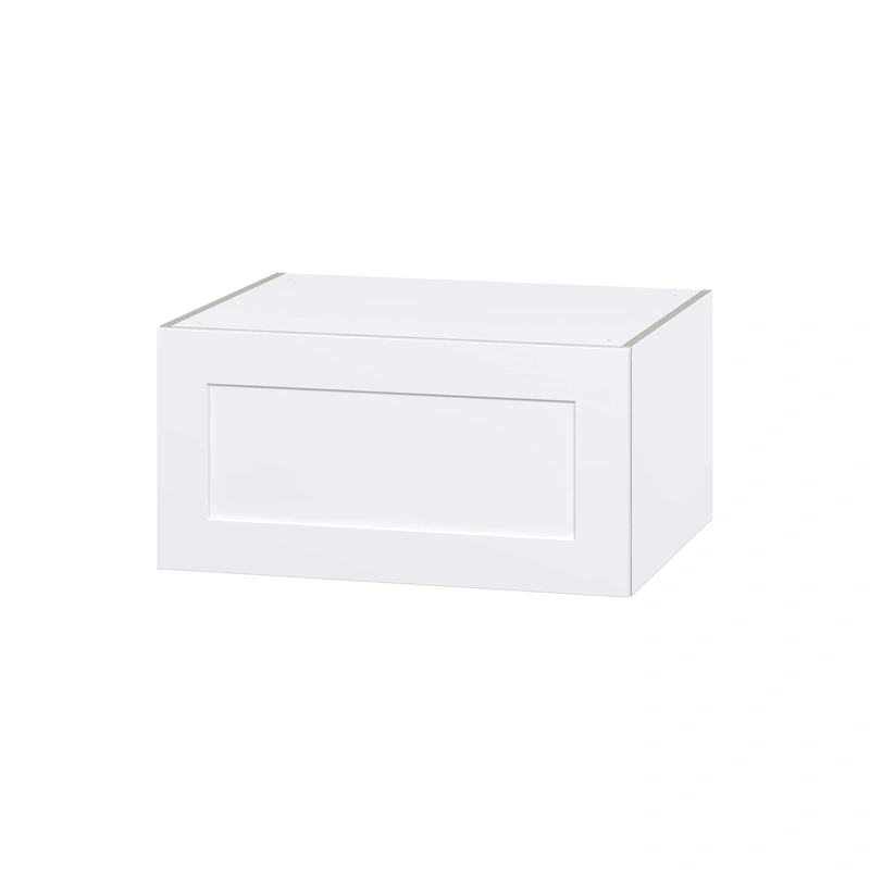 Hugo&Borg Jolie 30-in Warm White Cabinet Elevate your space with the Hugo&Borg Jolie 30-in Warm White Wall Cabinet, featuring a flat panel Shaker door design for timeless elegance. This fully assembled cabinet offers 20% more storage with its effic