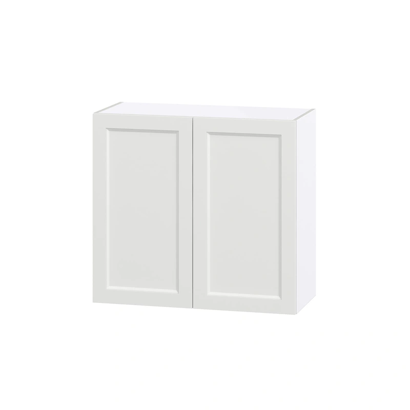 33-inch Bright White Shaker Wall Cabinet Elevate your kitchen design with the Riviera 33-inch Bright White Wall Cabinet by Hugo&Borg. Its sleek, European-style frameless construction offers an impressive 20% more storage space, while the stylish recess