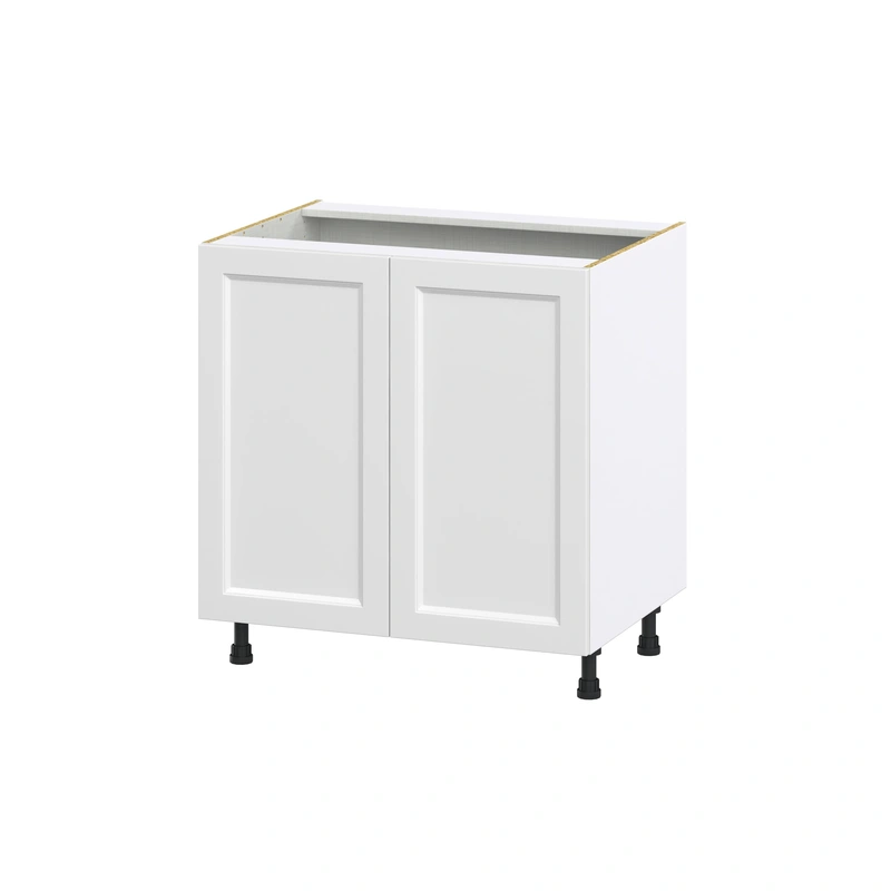 The Hugo&Borg Riviera Shaker Base Cabinet brings a harmonious blend of elegance and functionality to any culinary space. Its bright white finish, crafted through an 8-step painting process, exudes a polished sophistication transformational in any kitchen. The striking recessed panel and chamfered edge design create a subtle yet impactful aesthetic touch. Position this cabinet as a statement piece, accentuating it with minimalistic hardware and robust countertops for ultimate style. Truly essential for those who delight in lavish living amidst the comfort of their own homes.