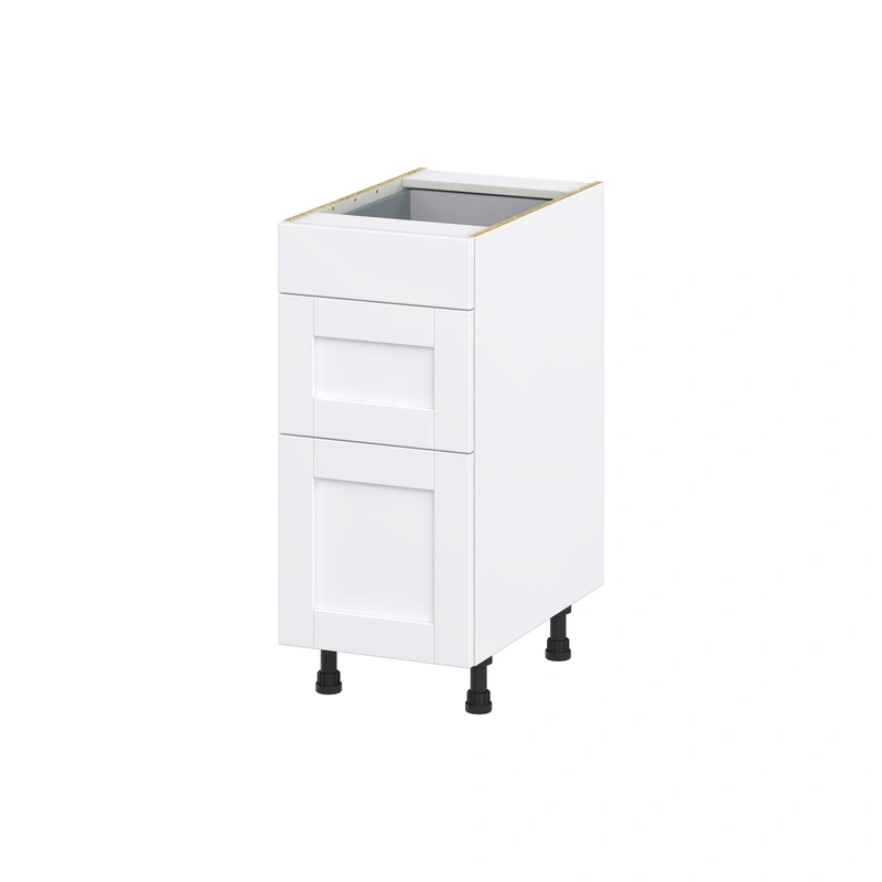 Rosemont Glacier White 3-Drawer Base Cabinet The Rosemont 3-Drawer Base Cabinet in Glacier White offers a sleek, modern design with 20% more storage through its full access construction. With its fully assembled convenience, this cabinet brings both style