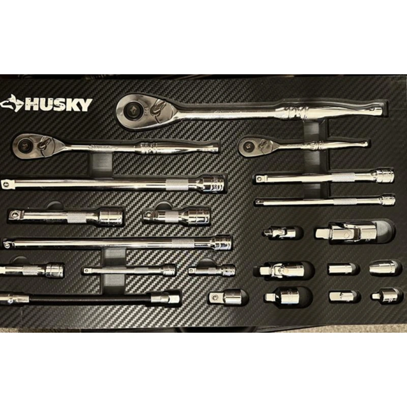 Husky 1/4 in., 3/8 in. and 1/2 in. 144-Position Ratchet and Accessory Set in EVA (22-Piece)