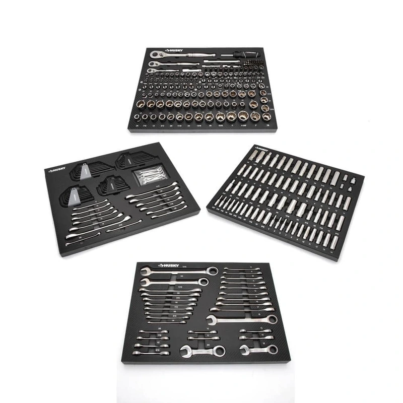 Husky 320-Piece Mechanics Tool Set in EVA Trays The Husky 320-Piece Mechanics Tool Set is the go-to kit for any professional mechanic or DIY enthusiast. Packed in durable EVA foam trays, it ensures all your tools are organized, with the assorted sockets, w