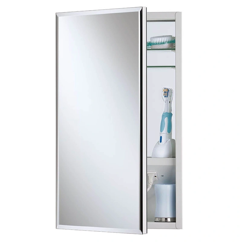 Upgrade your bathroom with the sleek Jensen Meridian Mirror Cabinet, offering both surface and recessed mounting options for versatile placement. Equipped with two GFCI outlets, it’s perfect for charging electric toothbrushes or razors directly within your cabinet space. The frameless beveled mirror and adjustable glass shelves add a touch of modern elegance while providing practical storage solutions.