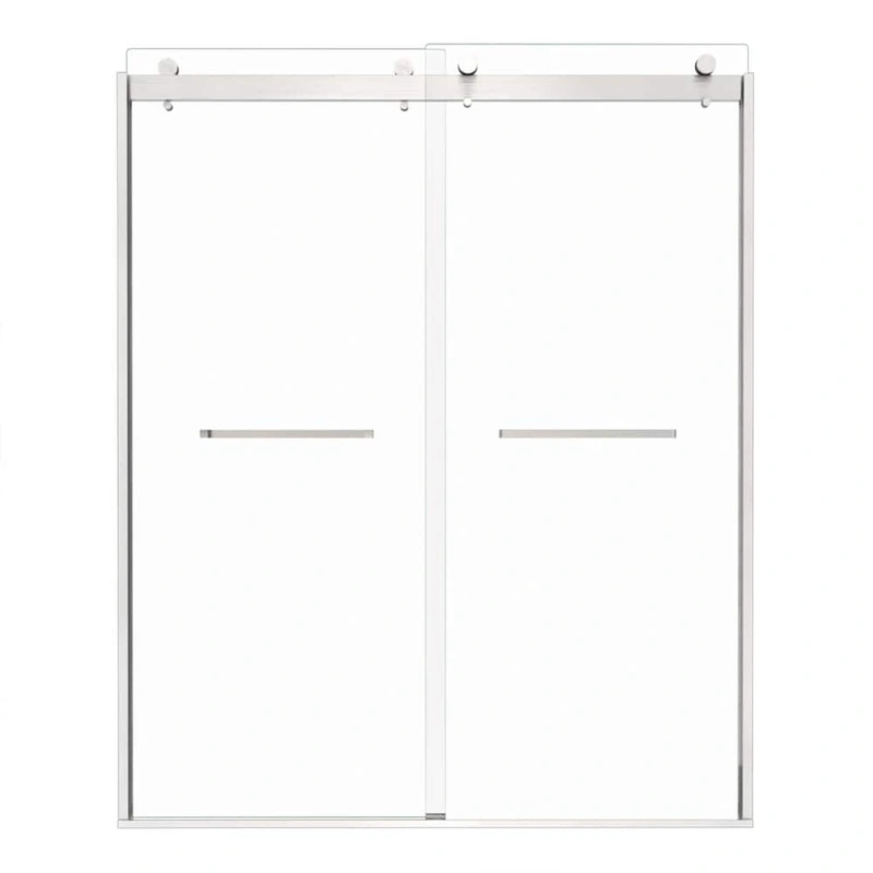 Upgrade your bathroom with the JimsMaison Sliding Semi-Frameless Shower Door, featuring a sleek brushed nickel finish and robust tempered glass. This modern door is designed to provide both elegance and practicality, delivering smooth sliding operation and enhanced safety with its anti-collision feature and easy clean glass treatment.