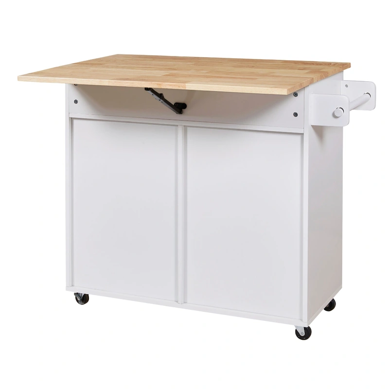 Kahomvis Rolling Kitchen Island with Drop Leaf Enhance your kitchen space with the Kahomvis Rolling Kitchen Island, featuring a stylish white MDF base and a drop leaf wood top that's perfect for compact spaces. The sturdy rubberwood tabletop combines funct