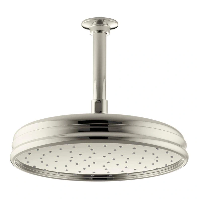 KOHLER Ceiling Mount Rain Shower Head Elevate your bathing experience with the KOHLER 8-inch Ceiling Mount Rain Shower Head in a stunning Vibrant Polished Nickel finish. Utilizing advanced Katalyst air-induction technology, this shower head provides a luxu