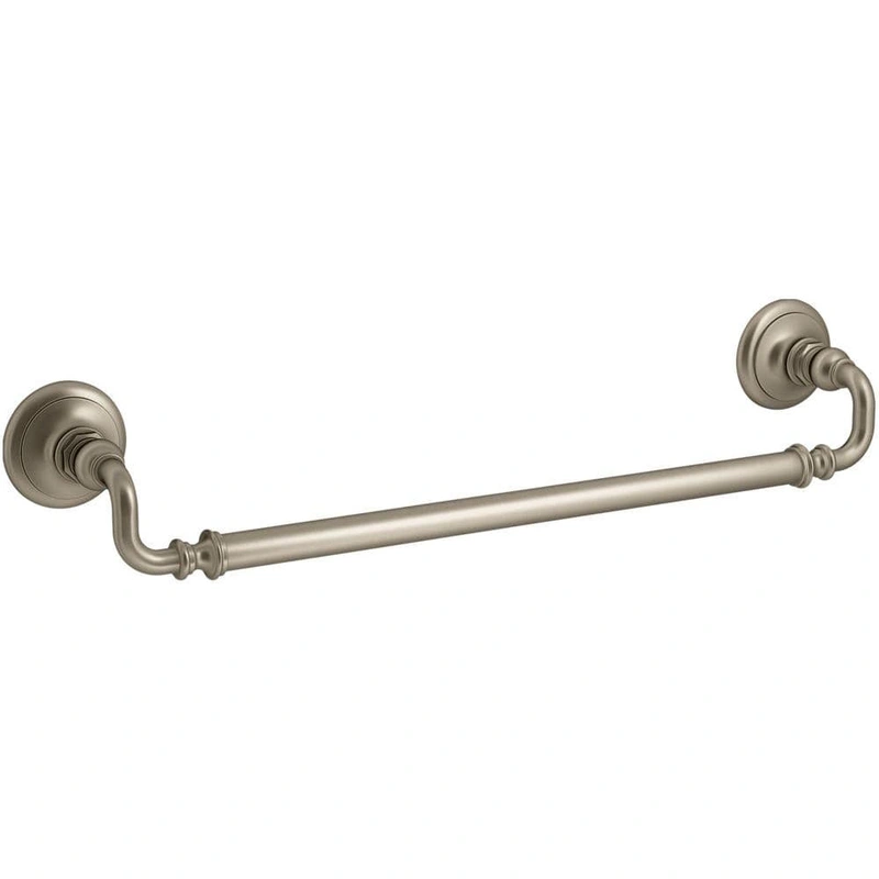 Transform your bathroom with the KOHLER Artifacts 18-in Towel Bar in Vibrant Brushed Bronze. This meticulously crafted piece boasts premium metal construction and a vintage artisan design that adds both durability and character to any space. Perfectly coordinate with other Artifacts collection items for a cohesive and elegant look.