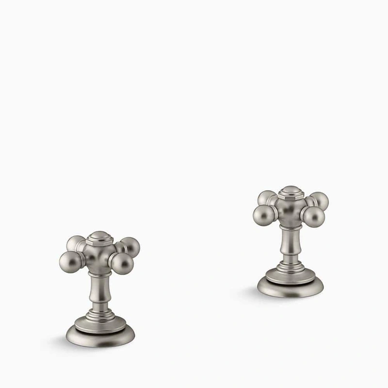 KOHLER Artifacts Cross Handle Trim, Brushed Nickel The KOHLER Artifacts 2-Handle Deck-Mount Cross Handle Trim in Vibrant Brushed Nickel offers a blend of vintage charm and modern sensibility. With its distinct cross handle design and premium metal construc