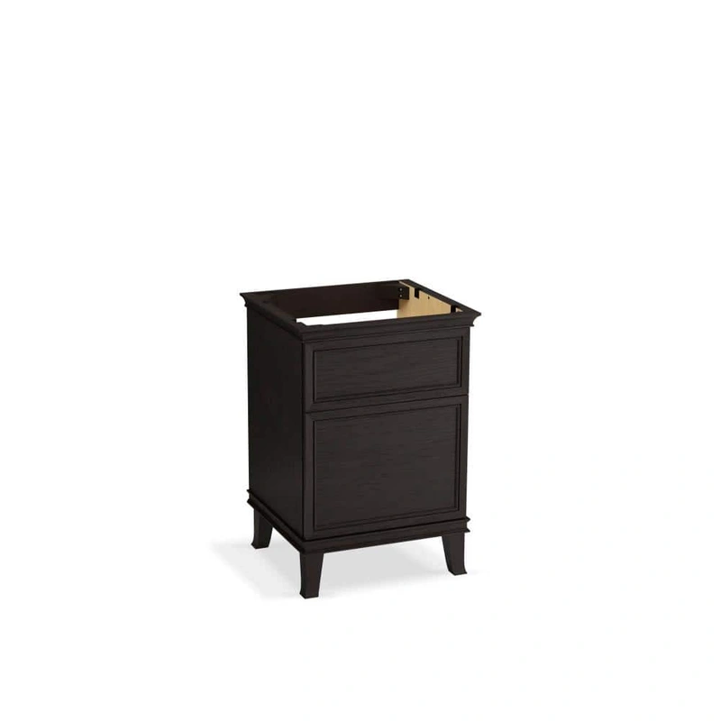 KOHLER Artifacts 24" Bath Vanity Cabinet - Carbon Oak Upgrade your bathroom with the KOHLER Artifacts Bath Vanity, a masterful blend of midcentury charm and modern elegance. This 24-inch cabinet, finished in Carbon Oak, features premium craftsmanship with