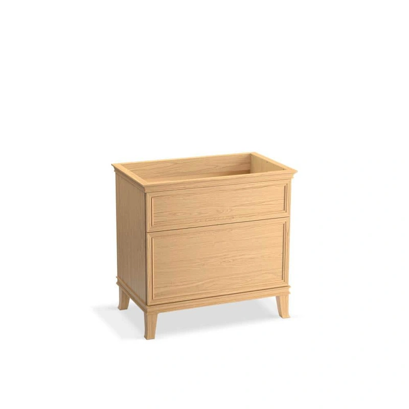 Elevate your bathroom design with the KOHLER Artifacts 36-inch Bath Vanity Cabinet in Weathered Oak. This refined piece combines traditional elegance with modern functionality, offering high-quality craftsmanship with dovetail construction and soft-close drawer slides.