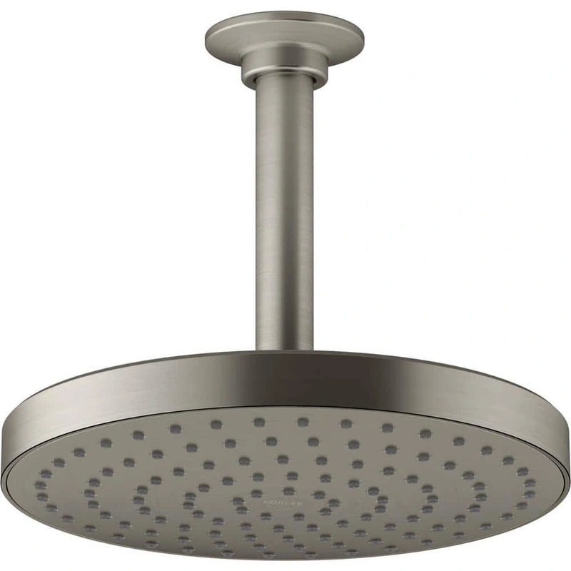 Enter a realm of refined opulence with the KOHLER Awaken shower head, an embodiment of modern luxury. Its brushed nickel finish and stylishly sleek design complement any bathroom aesthetic, infusing your space with inviting charm. Imagine the gentle embrace of a summer rain shower enveloping you, meticulously crafted by its uniform spray pattern. Enhance your sanctuary by pairing it with contemporary fixtures to create a harmonious and resplendent bath retreat, a testament to the pinnacle of luxurious living.
