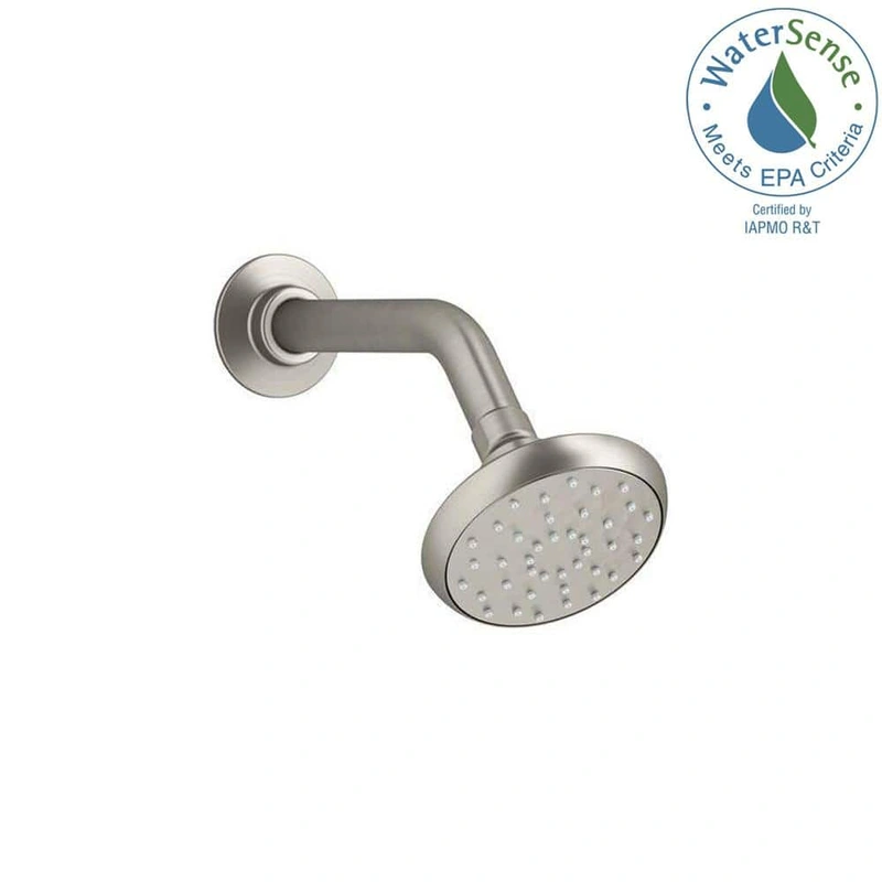 KOHLER Awaken 1-Spray Brushed Nickel Shower Head Experience the perfect blend of design, function, and sustainability with the KOHLER Awaken Shower Head. This modern fixture delivers a luxurious full spray with its MasterClean technology, ensuring a refres