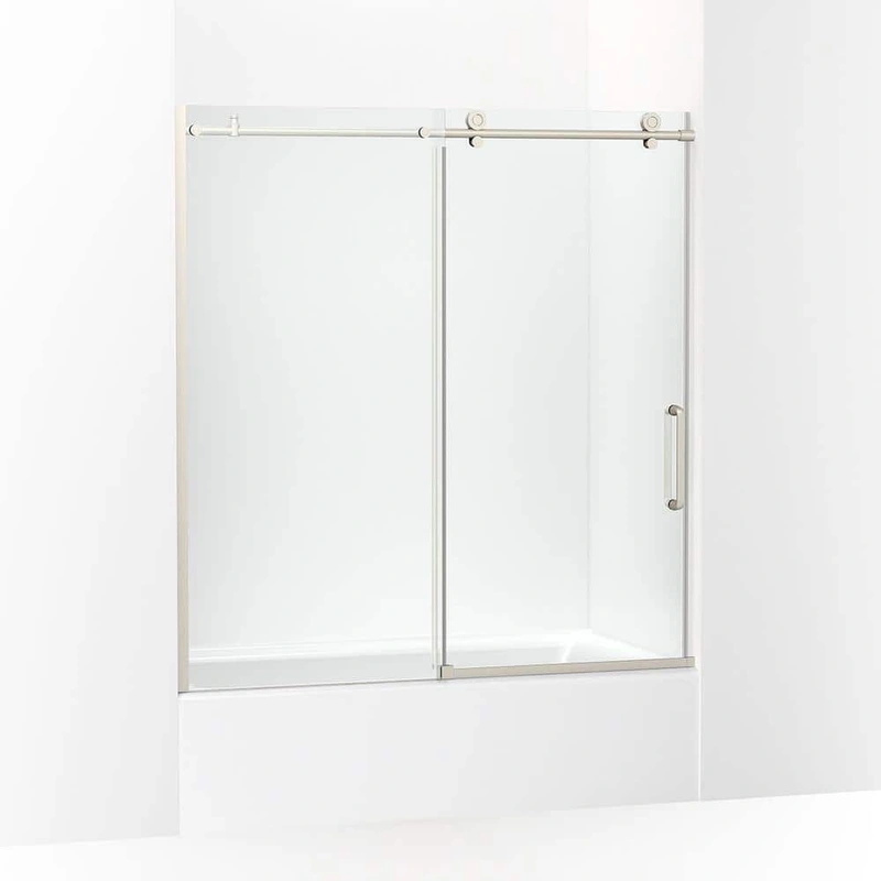 KOHLER Cursiva Sliding Frameless Tub Door The KOHLER Cursiva Sliding Frameless Tub Door in Anodized Brushed Nickel delivers both elegance and functionality to any bathroom. Featuring a crystal clear tempered glass and frameless design, this door provides a