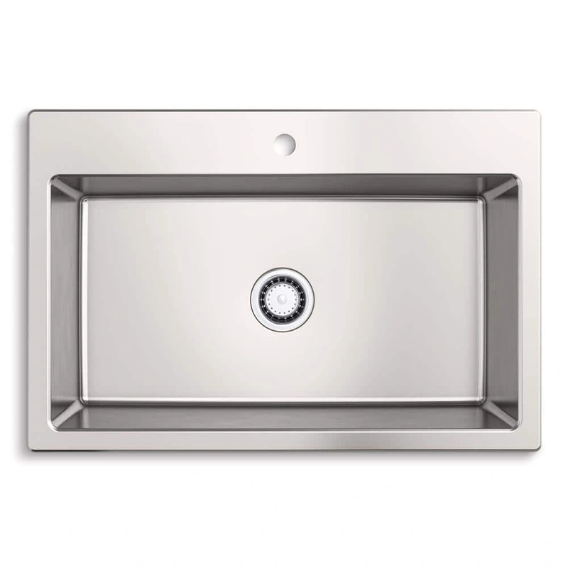 KOHLER Cursiva 33" Single Bowl Dual-Mount Sink The KOHLER Cursiva 33" Single Bowl Sink combines versatility and style, offering both drop-in and undermount installation options. Designed with premium 18-gauge stainless steel, this sink features a deep bowl
