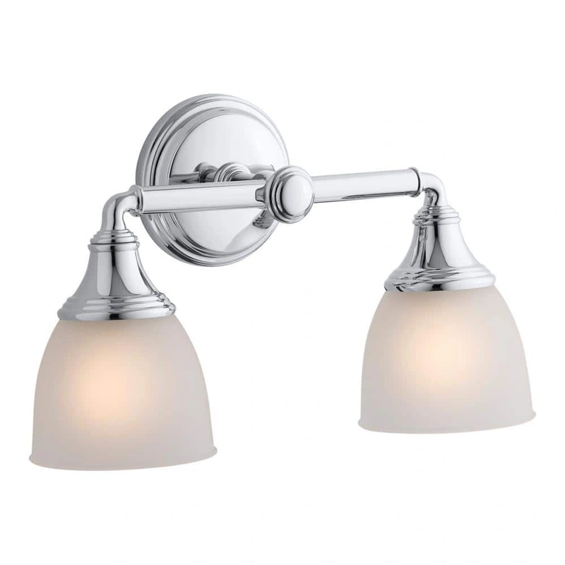 Step into a realm of classic sophistication with the KOHLER Devonshire Vanity Light. This artfully crafted piece channels the romance of a bygone era, fusing gently arched lines with opulent polished chrome. Imagine the soft glow enhancing your bath’s retreat-like ambiance, its dual lights perfectly adjustable to mirror your design dreams. Showcase this fixture alongside plush white linens and soft marble tones to create a restful, luxurious haven. Truly, it is a testament to enduring style and welcoming brilliance.