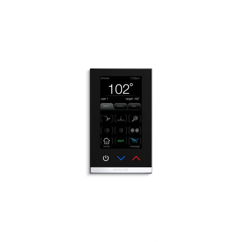 The KOHLER DTV+ Touchscreen Shower Interface offers a groundbreaking shower experience by seamlessly controlling water, sound, lighting, and steam to create a personalized spa-like sanctuary at home. Users can tailor every part of their routine with this intuitive, easy-to-use digital interface, maximizing both luxury and efficiency.