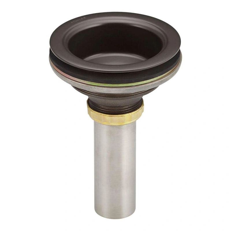 The KOHLER Duostrainer Sink Strainer Body with Tailpiece offers a durable and stylish solution for your kitchen sink. Designed to fit standard outlets, it combines a quick-locking installation system with solid-brass construction, ensuring both reliability and an upscale look. The oil-rubbed bronze finish complements any decor, making it a perfect addition to modernize your kitchen.
