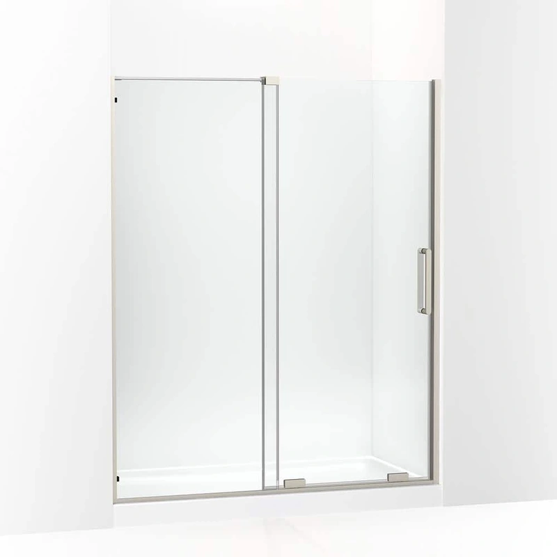 KOHLER Echelon Frameless Brushed Nickel Sliding Shower Door Transform your bathroom with the KOHLER Echelon sliding shower door, featuring a frameless design and sleek anodized brushed nickel finish. This modern door enhances your space with its smooth, he