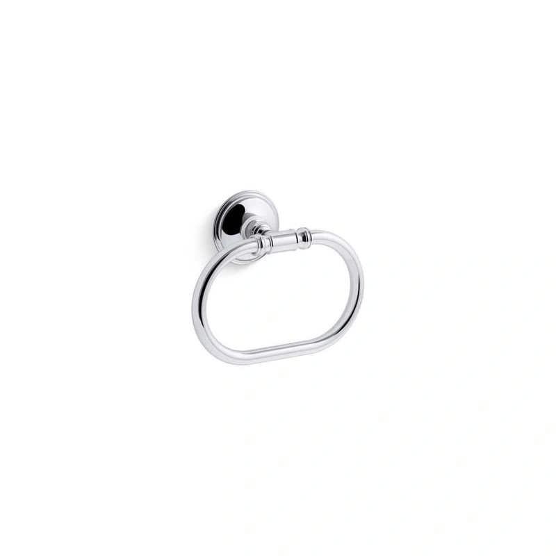 KOHLER Eclectic Polished Chrome Towel Ring Enhance your bathroom's elegance with the KOHLER Eclectic Wall Mounted Towel Ring in Polished Chrome. This versatile accessory combines traditional and transitional design for a stylish addition to any decor while
