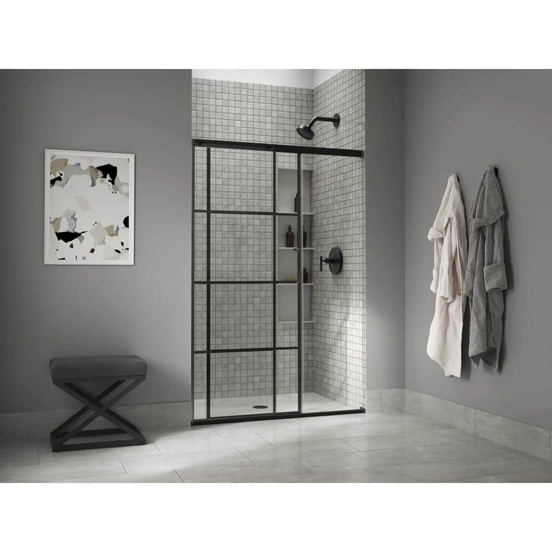 Transform your bathroom with the KOHLER Elate Frameless Sliding Shower Door, finished in a sleek matte black with crystal clear glass. Designed with oversized rollers and adjustable installation for ultimate convenience, this door combines bold style with lasting functionality.