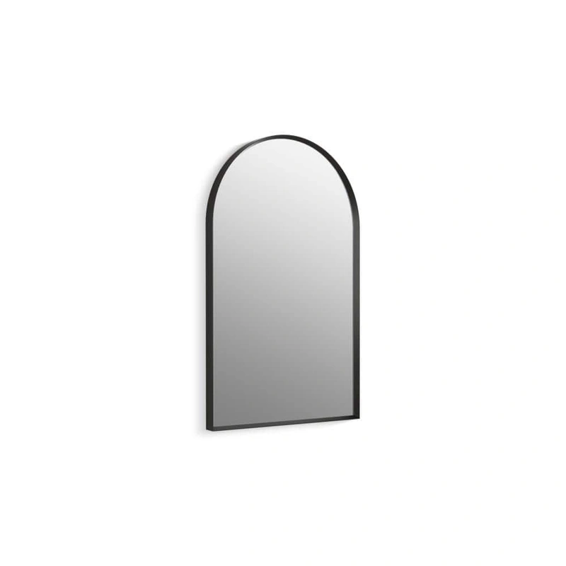 KOHLER Essential Matte Black Arched Vanity Mirror Elevate your bathroom's elegance with the KOHLER Essential Arch Framed Vanity Mirror in Matte Black. This mirror boasts a timeless design, ideal for any interior space, with a durable, corrosion-resistant f