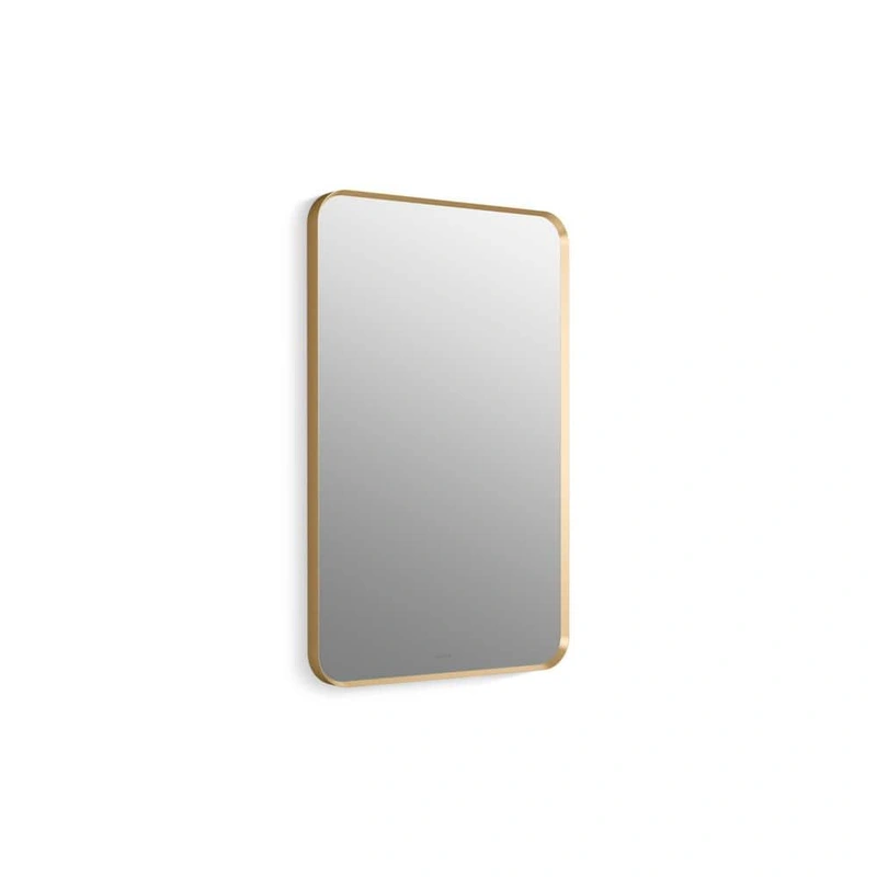KOHLER Essential Rectangle Wall Mirror in Brushed Gold Enhance your home with the KOHLER Essential Rectangle Wall Mirror, featuring a clean design with a luxurious brushed gold finish. This versatile mirror adapts effortlessly to any room, providing a touc
