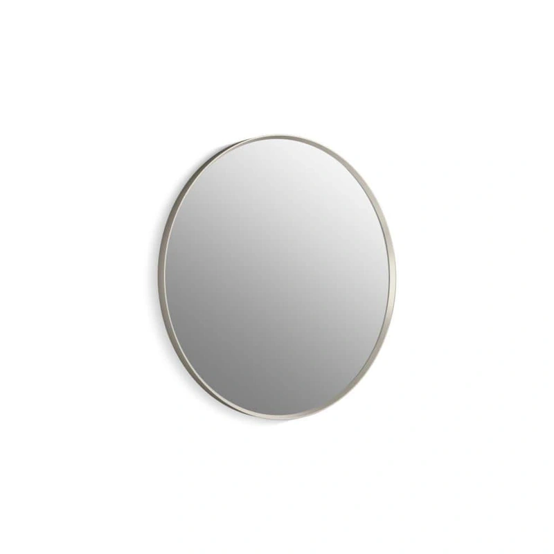 KOHLER Essential Round Vanity Mirror, Brushed Nickel Elevate your bathroom's style with the KOHLER Essential 32-inch Round Wall Mount Vanity Mirror in Brushed Nickel. This durable mirror combines a clean, timeless design with premium materials, offering a
