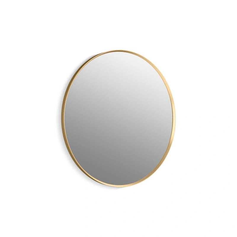 KOHLER Essential Round Vanity Mirror Experience timeless elegance with the KOHLER Essential Round Vanity Mirror in Moderne Brushed Gold. This 36-inch round mirror seamlessly integrates high-quality materials and design simplicity, making it a refined addit