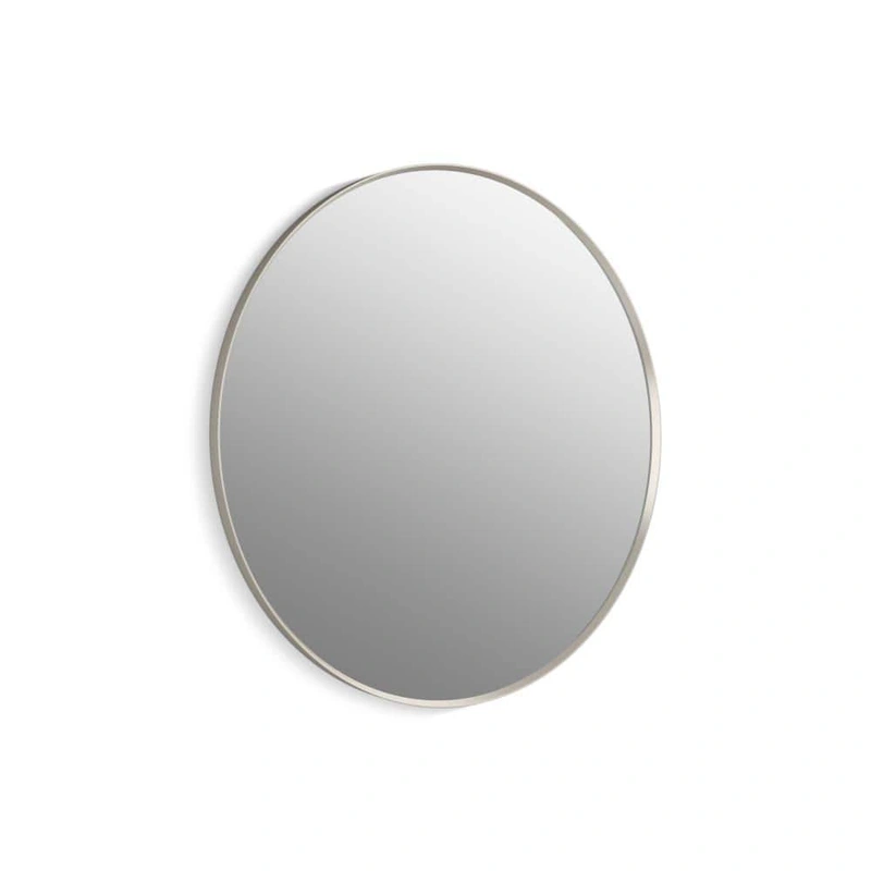 KOHLER Essential 42" Round Vanity Mirror The KOHLER Essential 42" Round Vanity Mirror combines elegance and functionality with its brushed nickel finish and premium construction. This timeless wall-mounted mirror is designed to complement any bathroom dcor
