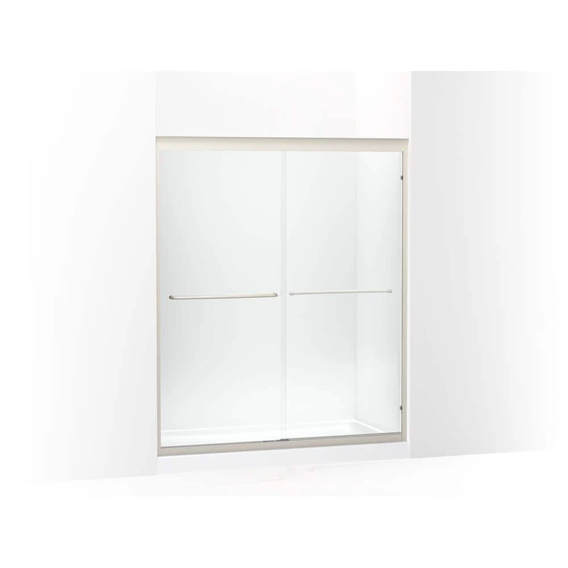 Upgrade your bathroom with the KOHLER Fluence Sliding Frameless Bathtub Door. Designed for modern aesthetic appeal, it features a sleek frameless design with crystal-clear tempered glass for safety and durability. Enjoy smooth, quiet sliding operation, complete with rust-resistant anodized aluminum hardware.